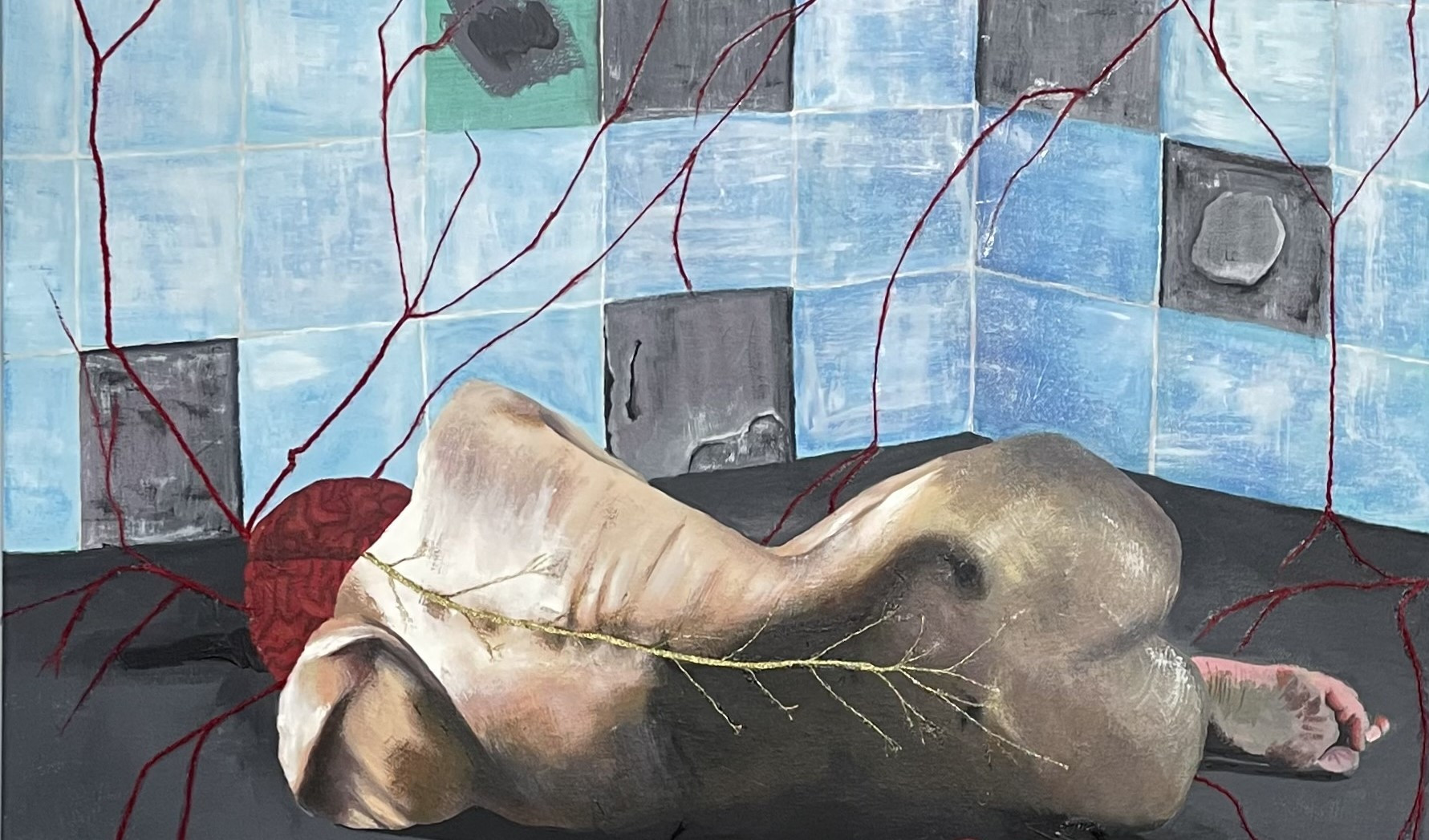 is a dynamic exploration of the interconnectedness of mental and physical well-being. Through a synthesis of visual elements, the painting invites viewers to contemplate the profound impact of anxiety on the human psyche, urging empathy and understanding for those navigating the intricate landscapes of their own minds.